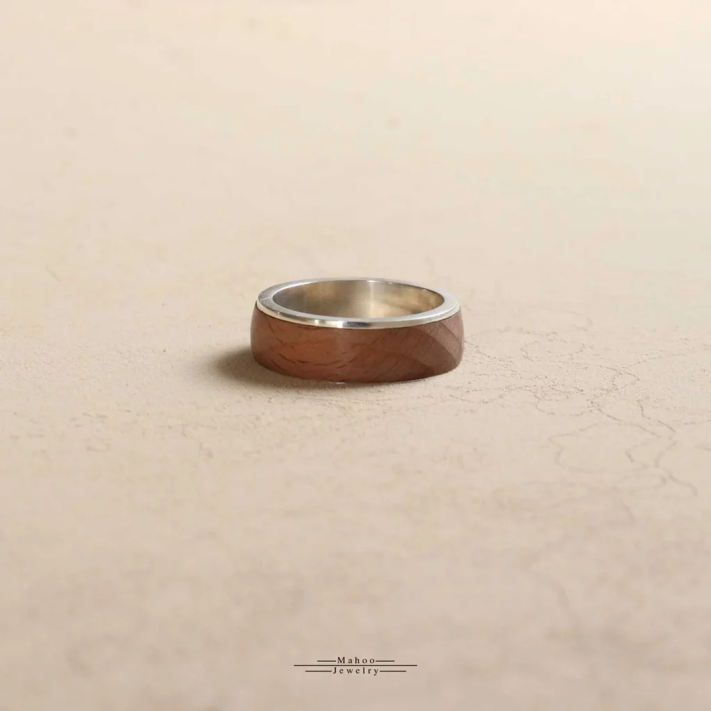 انگشتر نقره و چوب گردو و پرپل هارت مدل R0143