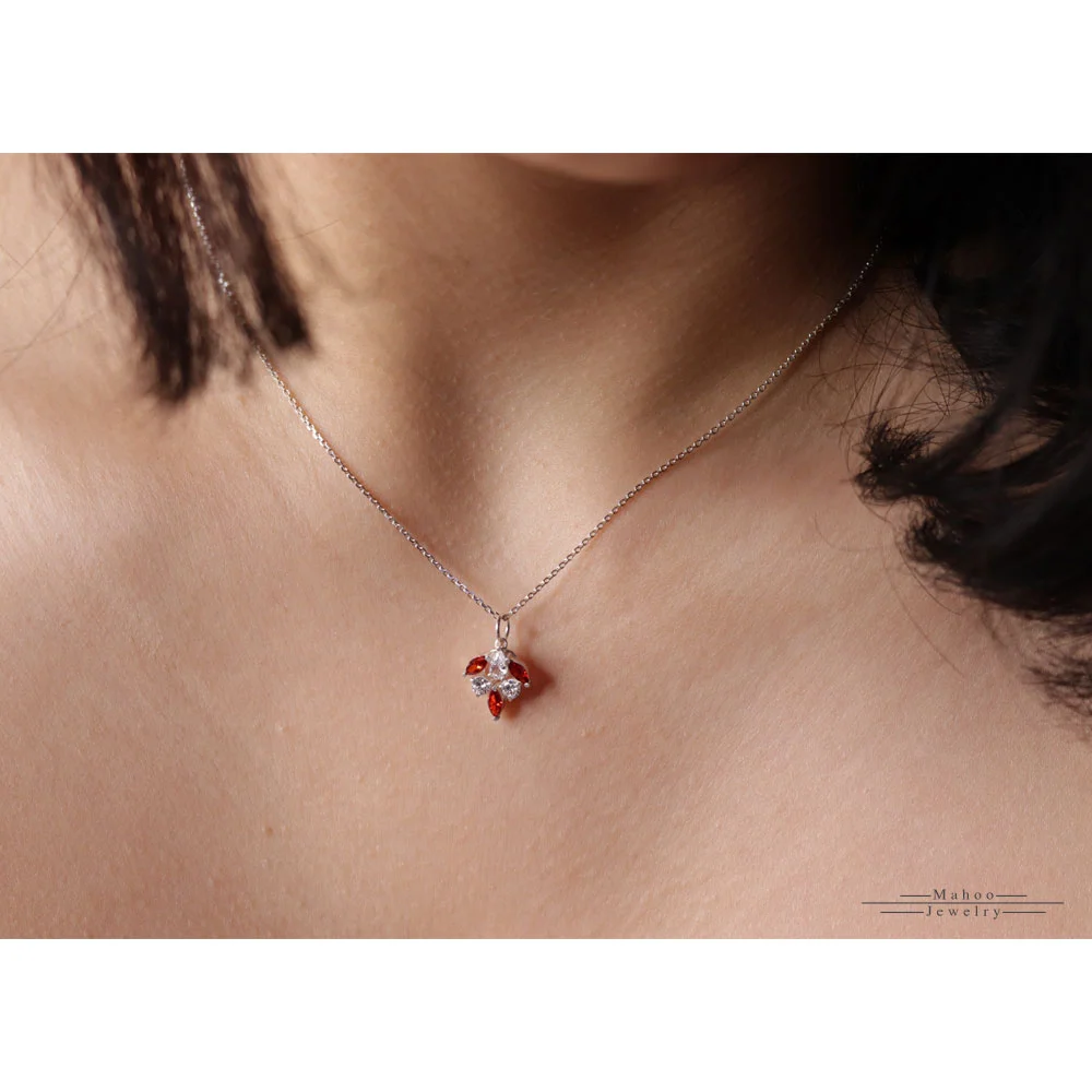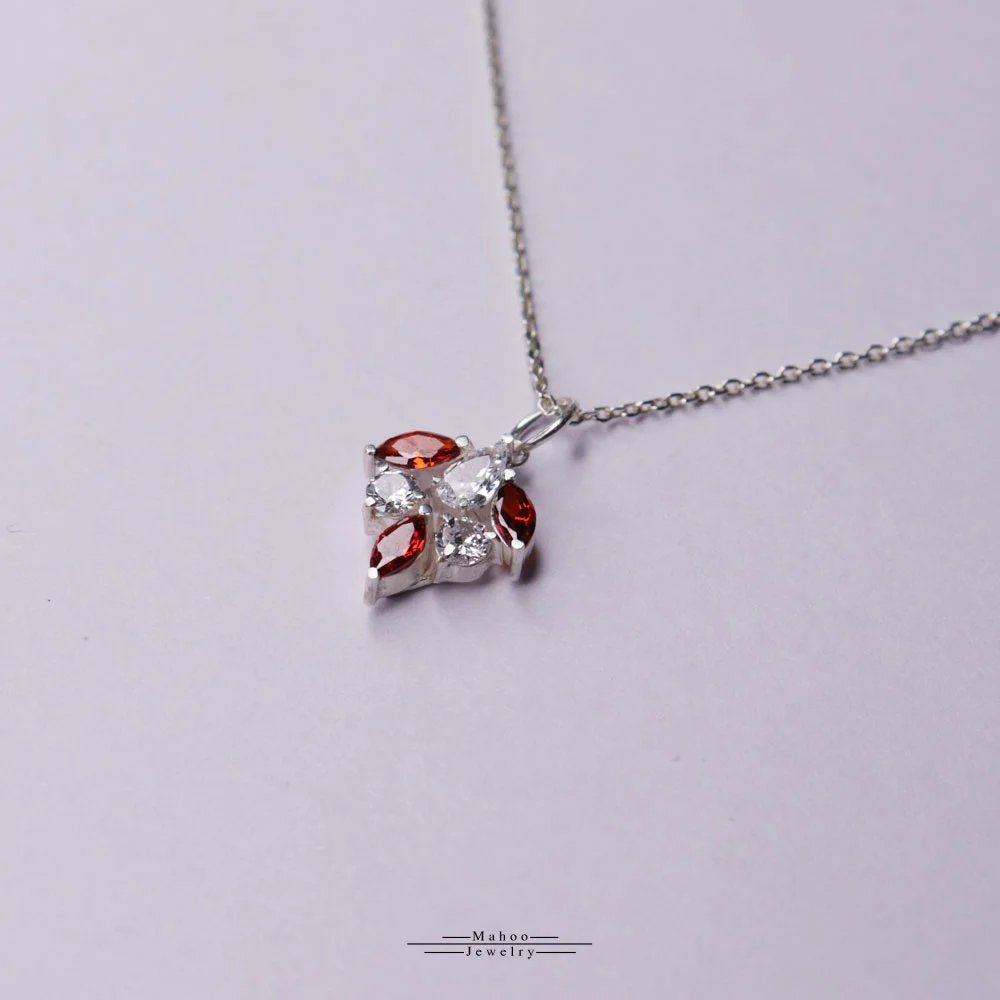 جنس گردنبند از نقره 925 هستش و میتونی با طول زنجیر دلخواه خودت سفارشش بدی. ما حتی برای راحتی و حق انتخاب بیشتر شما 3 مدل زنجیر به شما پیشنهاد میدیم و گردنبند نهایی شما بر اساس مدل زنجیر و طول زنجیر انتخاب شده شما ساخته میشه. شما حتی میتونید این گردنبند رو با روکش طلای سفید (رادیوم) سفارش بدید (حتما راجب کیفیت ماندگاری روکش طلا روی نقره بخش سوالات متداول رو بخون!). وزن این گردنبند حدود 2 تا 4 گرمه (بسته به نوع زنجیر و طول زنجیر انتخابی شما متغیره). از خواص نقره هم که دیگه فکر نکنم نیازی باشه که بگم!