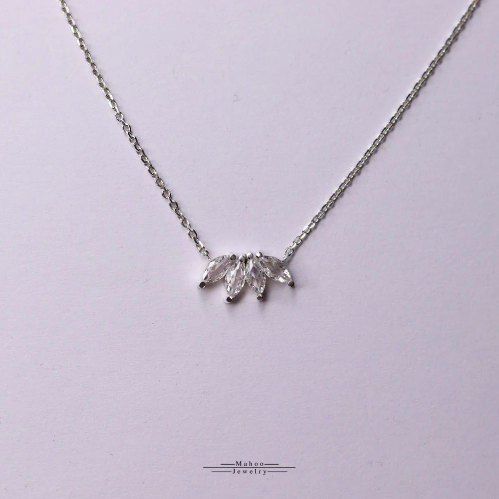 شما حتی میتونید این گردنبند رو با روکش طلای سفید (رادیوم) سفارش بدید (حتما راجب کیفیت ماندگاری روکش طلا روی نقره بخش سوالات متداول رو بخون!). وزن این گردنبند حدود 2 تا 3 گرمه (بسته به نوع زنجیر و طول زنجیر انتخابی شما متغیره). از خواص نقره هم که دیگه فکر نکنم نیازی باشه که بگم!