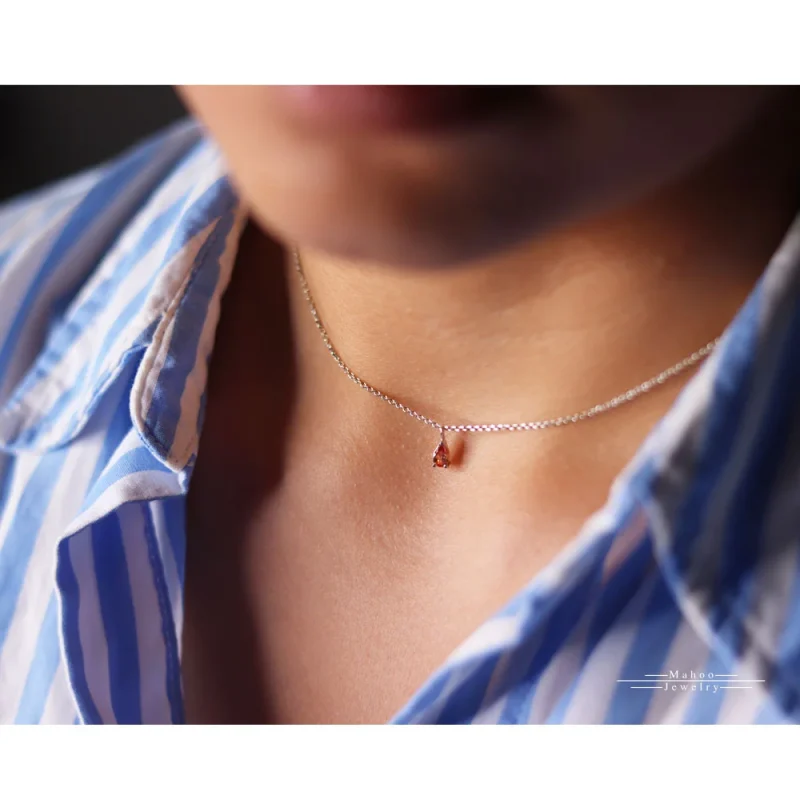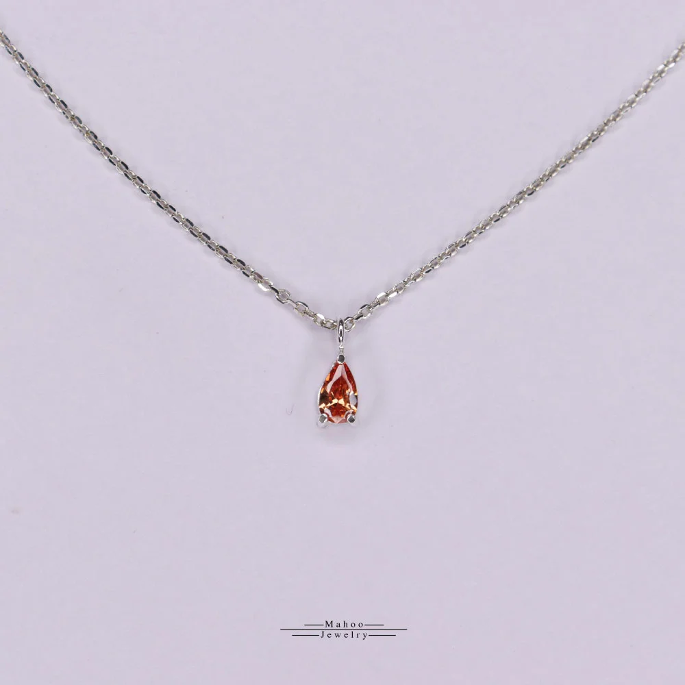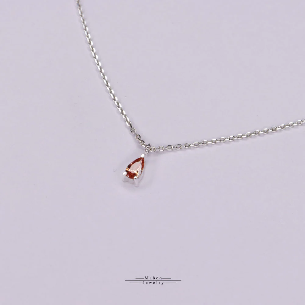 یک گردنبند کاملا مینیمال و جذاب با یک نگین تراش اشک 3 در 5 میلیمتر به رنگ نارنجی.