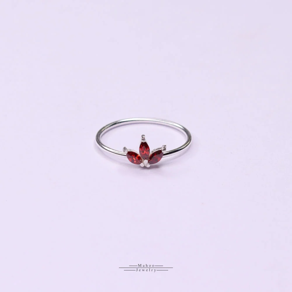 طراحی ساده و مینیمال داره و برای استفاده روزمره و بلند مدت عالیه اما نباید با انگشتر خشن رفتار شه چون به هر حال یک مدل مینیمال و ظریفه. این انگشتر 3 عدد نگین تراش مارکیز سایز 2 در 4 (میلیمتر) داره که به راحتی میتونید رنگ نگین ها رو از همین صفحه انتخاب کنید(انگشتر نقره گل 3 پر). جنس نگین های این انگشتر هم نگین اتمی نانو درجه 1 هستش که از بین بهترین نگین های موجود انتخابشون کردیم. جنس انگشتر از نقره 925 هستش و سایزبندی کامل داره. وزن این انگشتر بسته به سایز انتخابی شما بین 2 تا 3 گرم متغیره. از خواص نقره هم که دیگه فکر نکنم نیازی باشه که بگم!